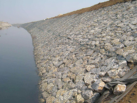 石籠網(wǎng)防護(hù)工程技術(shù)是指由專(zhuān)用機(jī)械將涂塑或不涂塑(PVC/PE)的熱鍍低碳鋼絲織造成石籠網(wǎng)片,然后將其裁剪、拼裝成符合技術(shù)需求的石籠網(wǎng)箱,用石塊等填滿(mǎn)后用于堤防、河邊、路基的防護(hù)。石籠網(wǎng)防護(hù)歸于柔性防護(hù)工程,有利于維護(hù)河道、堤防岸坡的安全安穩(wěn),可完成水土自然交換,增強(qiáng)水體自?xún)艄δ埽黄鹩帜軌蛲瓿蓧?..